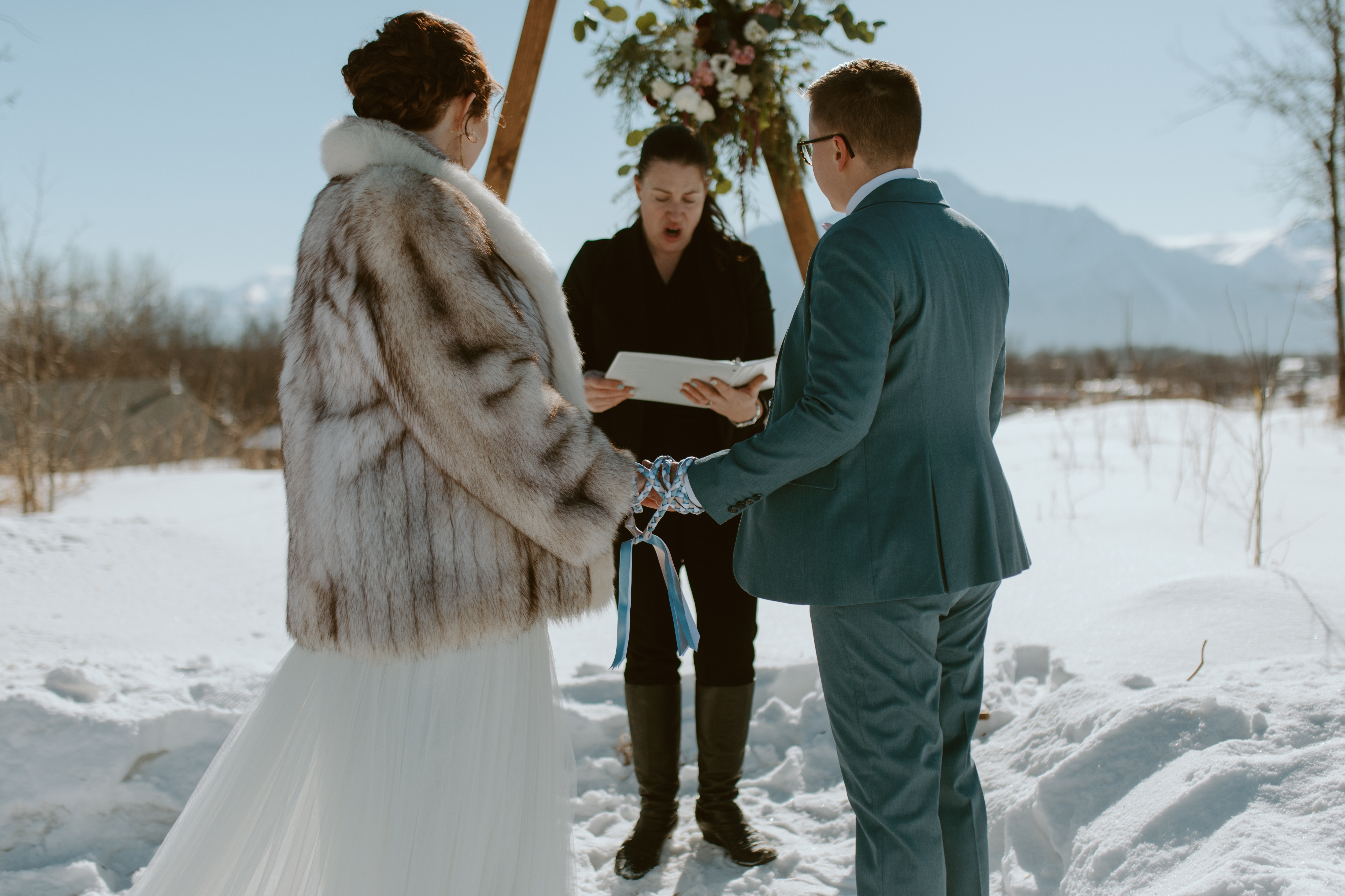 To the surprise of everyone, we decided to tie the knot in Palmer, Alaska, a slight eighteen hours of combined drive and flight time away from our home in South Carolina. The ceremony was quick, with no one except the two of us and our officiant in attendance. A few minutes past noon, we exchanged handwritten vows we’d memorialized within gray moleskin notebooks. We choked out “I do” before loosening the handfasting ropes from around our wrists and running inside in hopes of our blood circulation returning quickly.